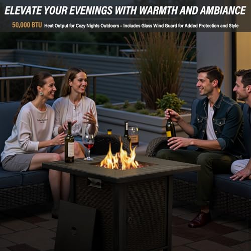 The fire pit table is not only stylish but also functional, featuring a 50,000 BTU heat output that provides ample warmth on chilly evenings. CSA-certified for safety, it delivers consistent heat and a stable flame without the hassle of ash or smoke. The fire pit's dual function allows it to convert into a regular table when the fire is not in use, making it a versatile piece for dining, socializing, or relaxing.