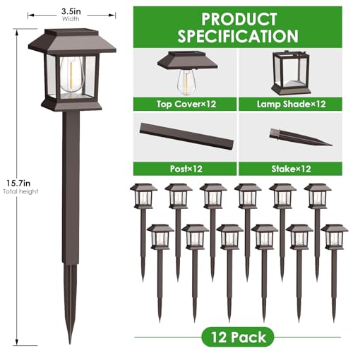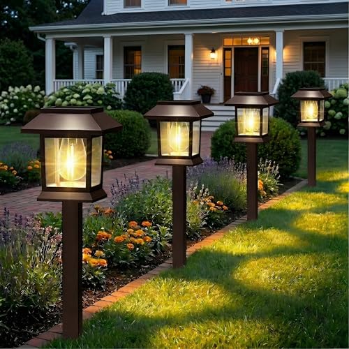 ?UPGRADED SOLAR PATHWAY LIGHTS OUTDOOR?The solar lights outdoor adopt a unique square fully transparent lampshade, and upgraded filament LED bulbs and reflective panels design. This design ensures brighter and more consistent light output, while consuming less energy, which is environmentally friendly and energy-saving, and we have upgraded the lights by adding reflective panels at the bottom to make the emitted light brighter.Each lamp is safe and reliable, and has high quality and long battery life. The solar pathway lights outdoor are a perfect complement to the garden.