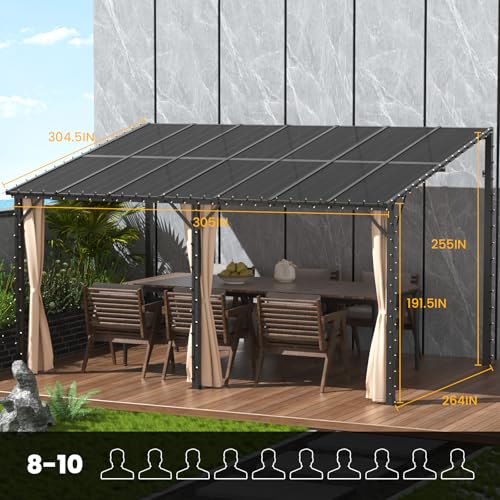 ?Wide Usage?The outdoor gazebo can be used for various purposes like hosting outdoor gatherings, using as a creative studio or simply as a quiet retreat for relaxation and contemplation, Its 120sq.ft of coverage helps protect friends and family from the harsh sun and inclement weather.This pergola is perfect for backyard,patio,lawn,courtyard,and other outdoor situations.