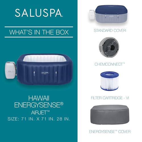 SALUSPA AIRJET HOT TUB: The SaluSpa Hawaii AirJet hot tub provides a soothing massage experience with 140 bubbling warm jets for up to 6 people. Spa reaches up to 104 degrees F for ultimate relaxation