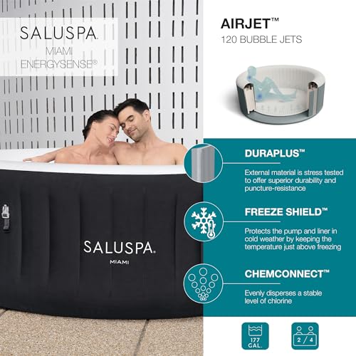 SOOTHING MASSAGE SYSTEM: The SaluSpa Miami Inflatable Hot Tub Spa features 120 jets which release air bubbles to create a warm, relaxing experience at your home. The massage system has two different intensity levels for your preference.