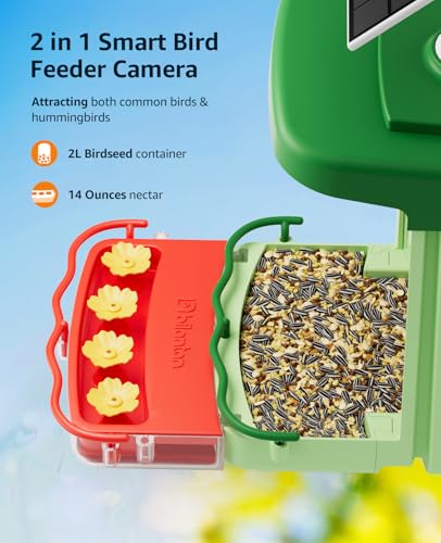 2-in-1 Feeder for All Birds: Designed with versatility in mind, this smart bird feeder features a dual-function system that supports both hummingbird nectar and regular bird seed feeding. Whether you're attracting vibrant hummingbirds or cheerful backyard birds, this feeder does it all. No need to switch devices or install multiple feeders.