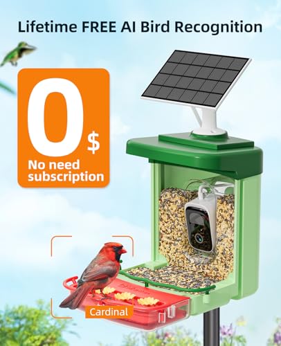 Built-In Al Identifies Birds with No Subscription: Curious who's visiting your feeder? Bilantan smart Al bird feeder recognizes bird species instantly and logs them in the app with no monthly fees, no hidden costs. It's a fun, effortless way to learn about backyard birds, perfect for families and bird fans alike.