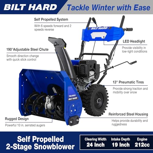 Easy to Use - The self-propelled drive system allows you to clear at your own pace with 6 forward and 2 reverse speeds. Push button electric start eliminating the need to pull-start a cold engine. An integrated LED headlight provides visibility in low-light conditions.