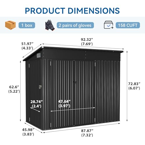 BinpLax 8'x4' Shed Galvanized Steel Storage Sheds with Triple Doors Weatherproof Outdoor Utility Sheds, Dual Lock Lean to Shed for Mower, Bike, Generator, Garden Tools (Black)
