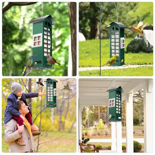 ????Durable Metal Construction:Made of coated metal and PVC interior, this wild bird feeder is rust proof in all weather conditions and effectively prevents squirrels from chewing on it, and the transparent window allows you to monitor whether the seeds are sufficient at any time.