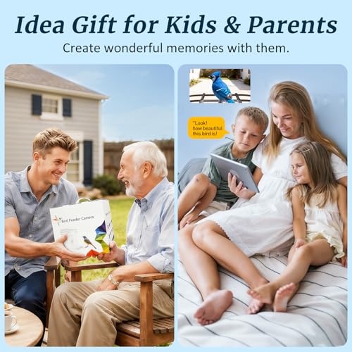 ????Ideal Christmas Gift for Bird Lovers: Bird feeder with camera, as a ideal Christmas gift for mom and dad, men and women, the older and children, relatives and friends. Delight nature enthusiasts with a thoughtful, bird-friendly gift. Whether you're a seasoned birdwatcher or a first-timer, this video bird feeder offers a unique way to connect with nature.