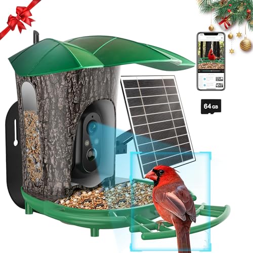 ?AI Bird Recognition and Free 64G SD Card?: Bird feeder camera with free AI bird recognition uses advanced algorithms to identify over 11000+ bird species, and directly learn more about bird information on the app. bird feeder camera wireless outdoor will record the birds videos and store in the Cloud(One month free trial for new user) ,and you can extend it by subscription or a 64G SD card. Share lovely moments with friends or family, it is a great gift ideas for kids and the elderly