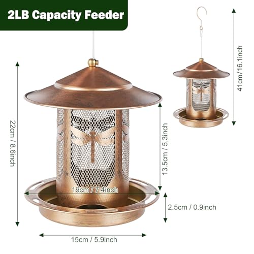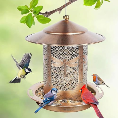 ?Durable Bird Feeder?: Crafted from premium heavy metals, its rust-resistant coating makes the metal bird feeder corrosion-resistant and durable. The bird feeders for outdoors hanging can withstand various weather conditions, ensuring long-term outdoor use.