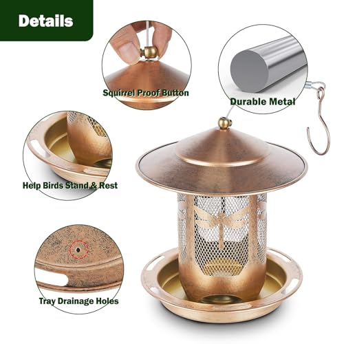 ?Elegant Retro Design?: This outdoor bird feeders features a retro lantern design with a sleek gold finish, adding a touch of elegance to your garden. Attractive look combined with fresh seeds, invites a variety of wild birds, creating a delightful spectacle for nature lovers.