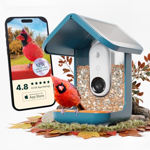 ADVANCED HD+ BIRD FEEDER CAMERA: The 2x larger sensor supports HDR for stunning contrasts and vibrant colors in 5MP photos and 2K video resolution. Unlock extra features and capture slow-motion videos of birds in flight, or enjoy a wider field of view.