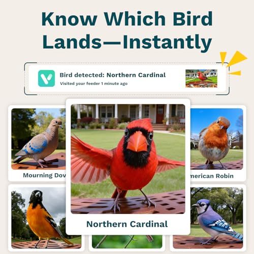 AI Intelligent Recognition - Real time Monitoring: Birdster smart bird feeder with camera can AI recognize 10000+ bird information using artificial intelligence (free to use for 1 month). When it recognizes birds approaching, it will push you real-time information and popularize bird knowledge. You don't need to open videos in real time to watch birds and never miss out on every exciting bird watching moment!