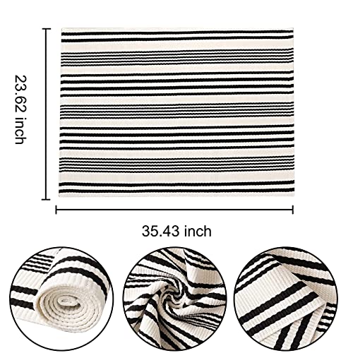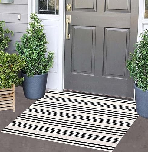 ?Classic Simple Pattern?:A unique design with a striped textured weave pattern to create a beautiful porch decoration for your house, which made your home so warm and elegant. Fashion and modern, chic and trendy look area rug is the good way to elevate your home decor.This outdoor black and white rug is great for everyday use.