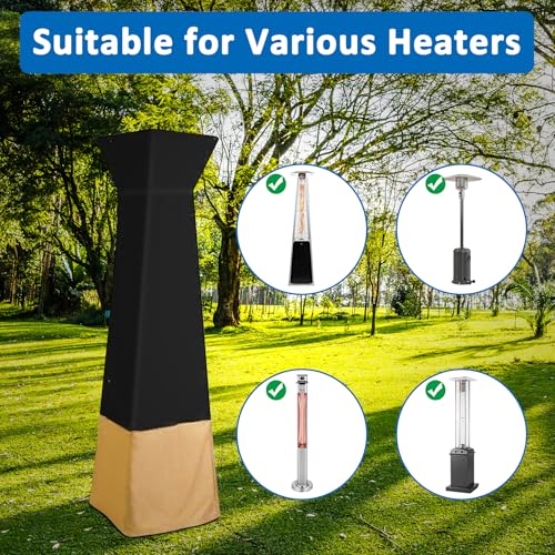 Material: 100% Polyester/Oxford fabric is a classic choice for outdoor heater covers, with an added UV-stabilized & Water-resistant coating and a water-resistant laminated backing could prevent water from seeping through Cover and keeps your outdoor payamid heater dry and ready to use
