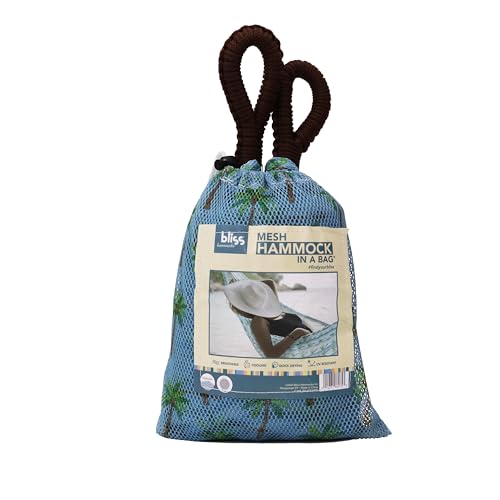 [BRAZILIAN-STYLE MESH HAMMOCK IN A BAG]: 55-inch wide bed. Brings together tradition and comfort. Its compact design accompanied by an included drawstring bag makes this the perfect mesh travel hammock.