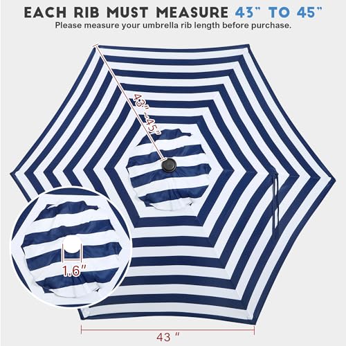 Fits 7.5 FT 6 ribs umbrella frame. Each rib must measure 44" to 46", please measure your umbrella rib length before purchase.