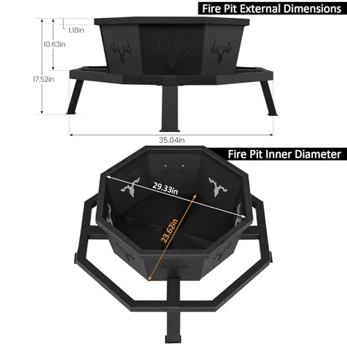 ?Octagonal Fire pit?: BOINN Outdoor fire pit features a multi-functional design ideal for outdoor heating or grilling. The fire pit with poker is designed with double outer octagonal ring around the central fire area allowing for easy movement.