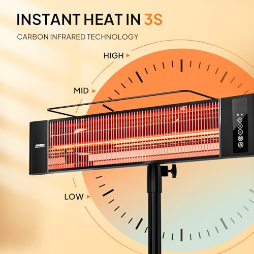 ???? High Efficiency Electric Patio Heater: With infrared radiation heating technology, the 1500W infrared heater provides instant and quiet heating, with three power modes to choose from (low/medium/high). The carbon tube design provides environmentally friendly and efficient heating, with a service life of up to 50,000 hours