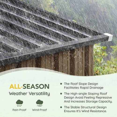 Transparent Window for Natural Light: Includes a clear window to allow natural light into the shed, making it easier to locate items without the need for additional lighting.