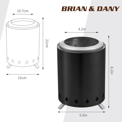 BRIAN & DANY Solo Fire Pit with Stand, Smokeless Firepit for Outside, Stainless Steel Personal Stove Bonfire Fueled by Pellets or Wood, Birthday Gifts, Housewarming Gift - 5.9in x 8.2in,Black