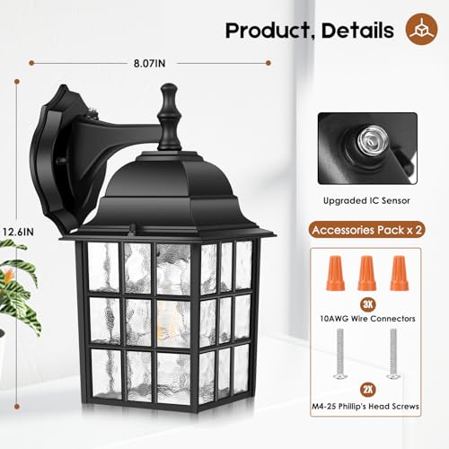 Sturdy & Unique Waterfall Glass: Unlike other fragile and crispy thin glass panel, our exterior wall light fixtures embedded with premium thick glass which are durable and sturdy to bear outside pressure such as downpour, heavy snowfall. The unique waterfall design create friendly outdoor sensor lights that welcome you home with soft and cozy lighting. Besides, they adds excellent chic and classic atmosphere among any corner of your outside space