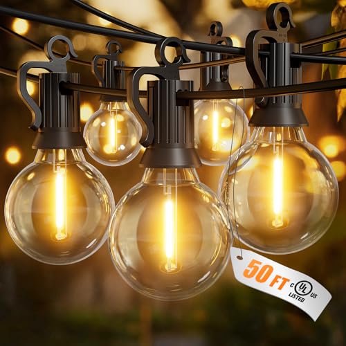 ? 50ft LED Connectable String Lights ?- This outdoor light comes with 25 +2 G40 LED bulbs. Each bulb is 2 feet apart for a total length of 50 feet. It supports an end-to-end connection of up to 28 strings, allowing you to customize the length you need. With the size of 1*1*2 ft, these lightweight and convenient patio lights are easy to carry and store