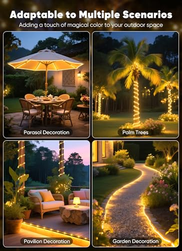 ?Indoor and Outdoor Applications?These solar rope lights are waterproof, flexible, and long, allowing you to create stunning decor in your garden, home, commercial building, show, hotel, or restaurant. Use them to decorate windows, patios, and more with their sparkling and magical light, perfect for weddings and parties. Enjoy the flexibility of solar power and beautiful design in any setting;