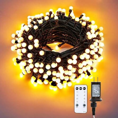 Mini Globe Christmas Lights: Mini globe design, the globe string lights are more focused and brighter compared with the globe lights in the market. 200 led bulbs give off a warm & cozy light, create a unique relaxing and soothing indoor atmosphere. The lights are spaced about 4 inches apart across a 65.6ft green strand with extra 16.4ft leading wire ( Total length 82ft )