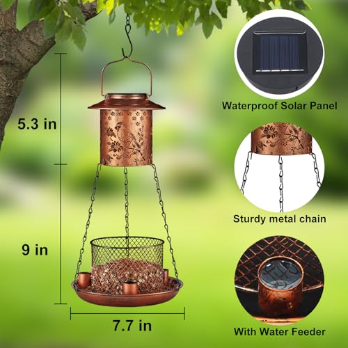 ?Exquisite Hummingbird Feeder?It is not only a bird feeder for outdoors hanging, but also a Solar garden lantern at night.The light shines through the hollow pattern, adding a beautiful breath, Nice present for bird lovers and Beautiful decoration for your garden or backyard, it's a great gift for your relatives and friends