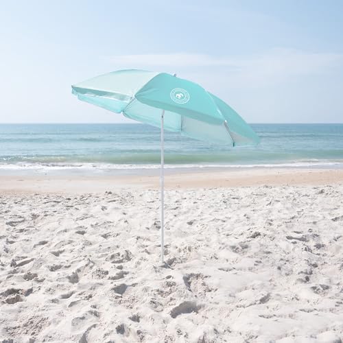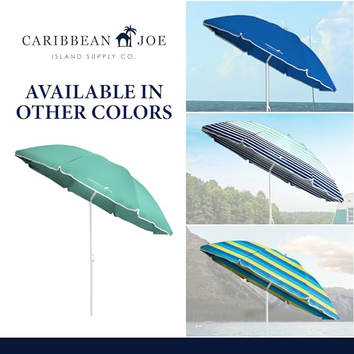 OUTDOOR BEACH UMBRELLA: Easily bring shade with you no matter the occasion with the Caribbean Joe tilt beach umbrella with included carrying bag; perfect for providing sun shelter while relaxing on a towel or in a chair on the beach, and can also be used for your patio table, day in the park, or your backyard. The adjustable, tilting mechanism allows for easy adjustment to the moving sun