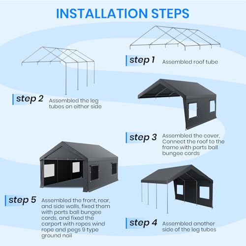 Easy to Assemble & Portable Design:This portable garage carport is designed for easy assembly, with no need for professional help. Its lightweight yet sturdy frame makes it portable and convenient for temporary or seasonal use, perfect for anyone who needs a flexible outdoor shelter solution.