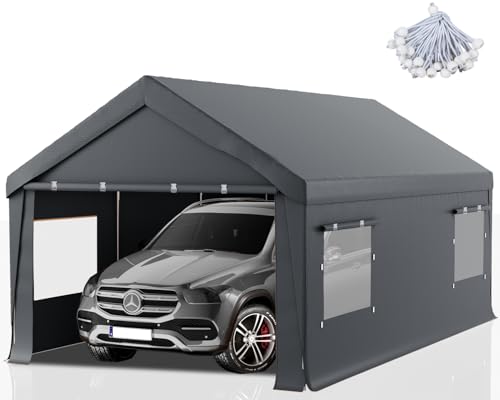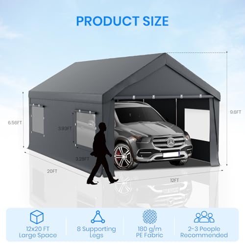 Heavy Duty & Durable Construction:This 12x20 FT portable garage carport features a robust steel frame and a heavy-duty waterproof canopy, ensuring reliable protection for your vehicles, boats, and RVs. The high-quality materials are designed to withstand harsh weather conditions, including UV rays, rain, and wind.