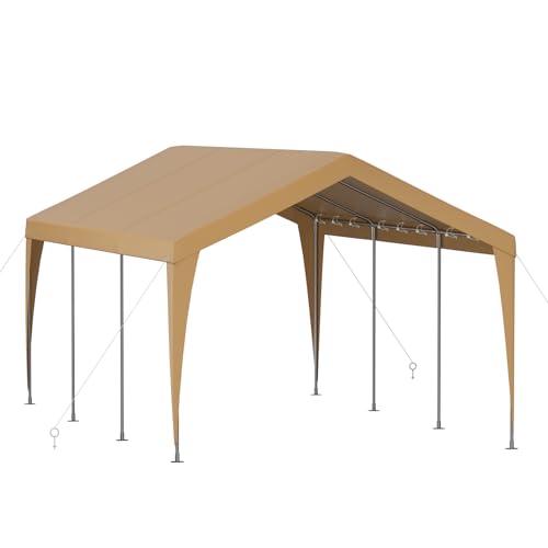 ?Heavy Duty Stability Frame with 8 Legs?-This carport shelter is constructed with a heavy-duty rust-resistant galvanized steel frame that prevents rust, and corrosion. Featuring 8 legs comprising thick steel poles, along with 4 sturdy windproof ropes and 16 ground stakes make the whole metal carport 12x20 more stable and can be safe from harsh weather conditions