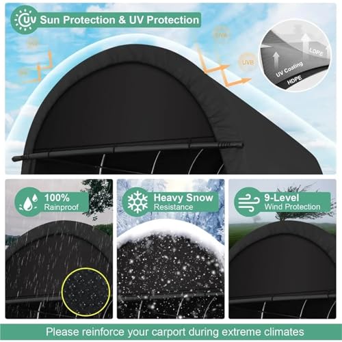Spacious Interior: The car canopy features a generous design that accommodates vehicles of different sizes, including cars, trucks, and SUVs. Enjoy the peace of mind knowing your vehicle has ample space for protection