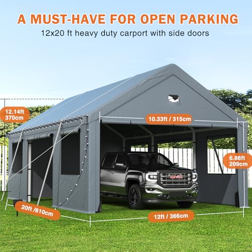 ?Convenient Side Windows and Doors?With unique 4 side windows and 2 side-opening doors ?our car ports 12x20 heavy duty offer additional ventilation and easy access, increasing the practicality and comfort of the space.