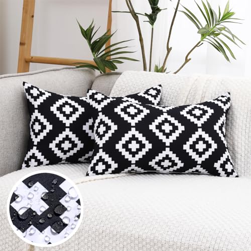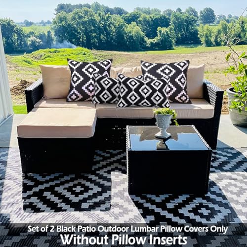 ?Unique Black Boho Design? These modern farmhouse accent lumbar pillow covers are perfect decorations for living room, bedroom, patio furniture, porch swing, balcony, couch, car, office and etc. Due to their excellent water resistance, these black outdoor lumbar pillows covers are also particularly suitable for use with the black outdoor rug in your patio.
