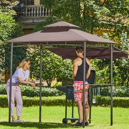 Sturdy steel grill gazebo: Combines vented, double-tiered canopy design with plenty of UV protection, water resistant, and smoke ventilation while grilling, rustproof steel frame enhances stability against windy conditions