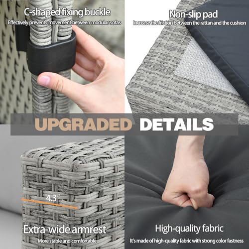 Robust & Durable - This outdoor sectional patio sofa set has a sturdy frame and high-quality PE wicker that can resist any weather conditions. Tempered glass and thick, water-resistant, resilient cushions are cleanable.