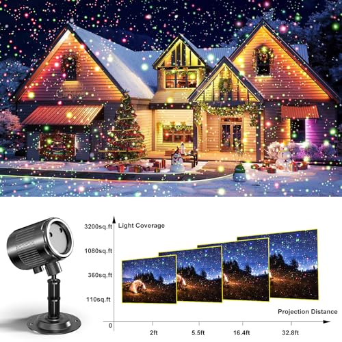 Outdoor Waterproof Projector Lights: No matter the season, this IP65 waterproof laser projector light stands strong against rain, snow, or blazing sun. Covering up to 3200 square feet from 16.7ft feet away, it casts enchanting firefly lights on your garden, home, or any indoor/outdoor area, making every season magical.
