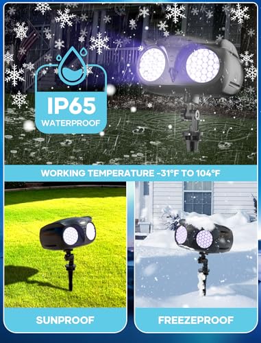 Versatile Installation Options: This snowflake projector offers three easy installation choices with a ground stake and a round flat base included, which let you lay it flat, stake it into the ground, or mount it on a wall. The 180° adjustable swivel head providing flexibility in achieving the perfect snowflake projection angle, no matter where you place it.