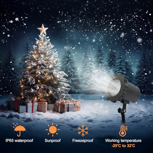 ?Waterproof & Weather Resistance?Our Snowflake Projector Lights are built to withstand all weather conditions, from snow to rain, with an operating temperature range of -25F to 40F. The 16.4 ft power cord provides flexibility for outdoor use, making them perfect for creating a festive atmosphere.