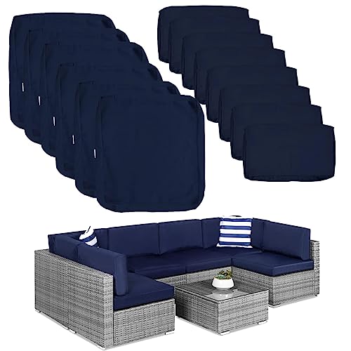 Dimension: This cushion and pillow covers set fits for 7 pieces/ 6-preson seater outdoor patio furniture set(patio sectional sofa set,patio conversation set) seat cushions and backrest pillow,These patio cushion slipcovers total Included 14Pack covers(navy)-Large, 6Pack-Seat cushion covers (25.6Lx25.6Wx4H Inch),6Pack-Backrest cushion pillow covers (25.6Lx13.5Wx4H Inch) and 2Pack-Backrest cushion pillow covers (21.6Lx13.5Wx4H Inch)