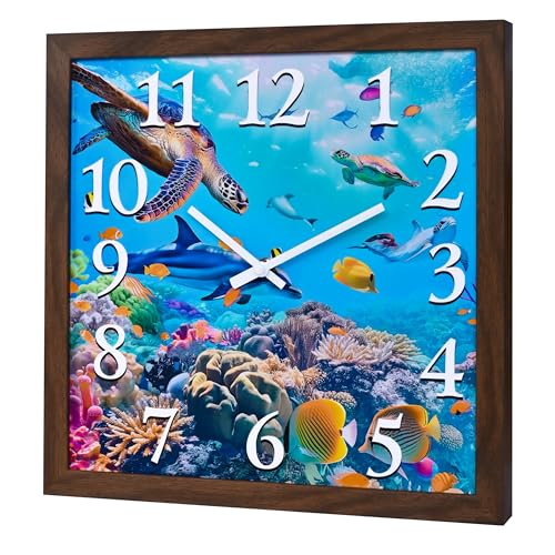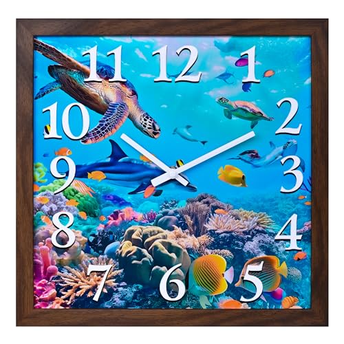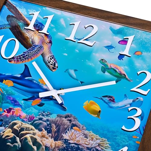 ?Creative Clock Design?The plastic oil painting dial has a Vast Underwater World in the background with white hands and white shaded numerals that are Easy to Read. The Wooden Vintage Frame is made of high quality ABS.