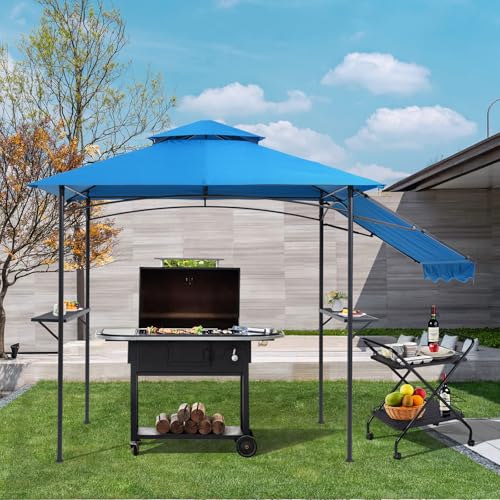 Extra Shade: The gazebo tent is designed with an extra side canopy, it can open and close in multiple angles, provides shade to food in hot summer and provides help in wind or rainy days