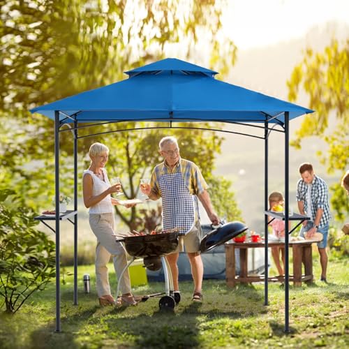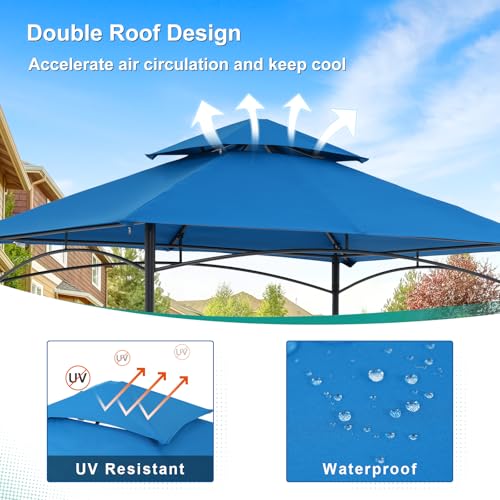 Double Vented Roof: The double-layer top with big vent allows air exchange to reduce the temperature inside and provides extra stability for the grill gazebo in wind