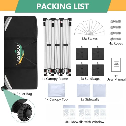 ?10????30????????-???????????????????? ???????????????????????? ?????????????????????????????????????????????COBIZI 10 x 30 pop up canopy tent provides 10x30 square ft of shadow area.The interior of the party tent 10x30 is large enough for more than 40 people, making it perfect for outdoor leisure activities such as backyard, garden, family party, sports events, camping and Wedding. It will be the perfect shelter for you to have fun in this summer!