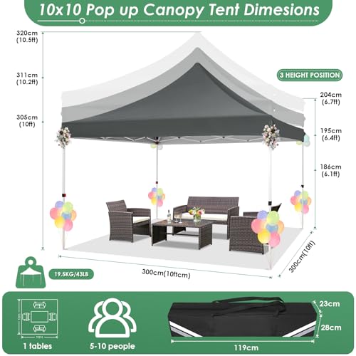 [Canopy Large Coverage Space]10x10 pop up canopy tent with sidewalls and raised roof, The interior of the 10x10 party tent is large enough for more than 10 people, making it perfect for family courtyards or gardens, outdoor gatherings.