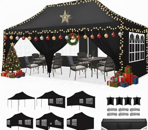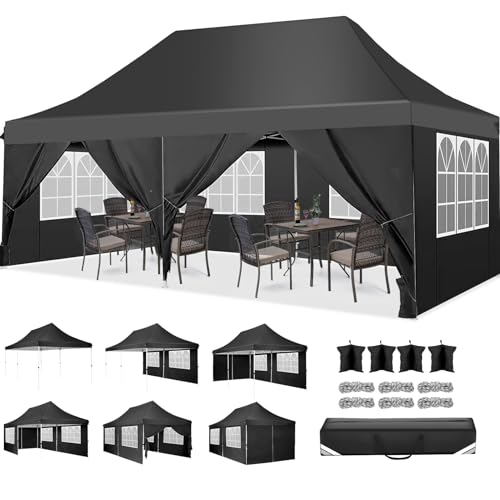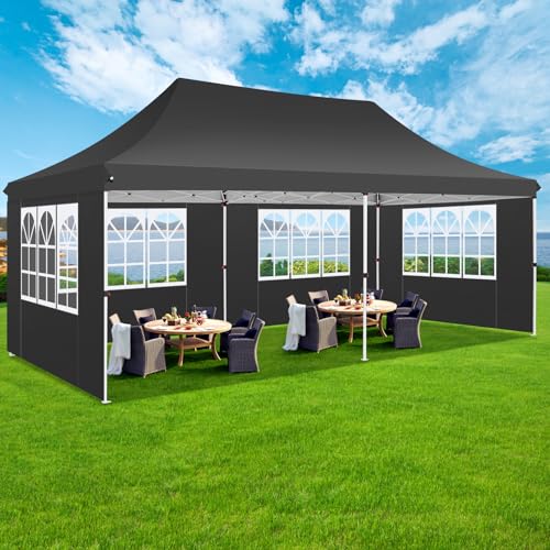 [Removable sidewalls]: 10x20 pop up tent has 6 sides, including 2 door panels and 4 window panels. Each panel is detachable and interchangeable can be freely combined. For example, you can set up a canopy tent with all side walls in winter or one without side walls in summer.