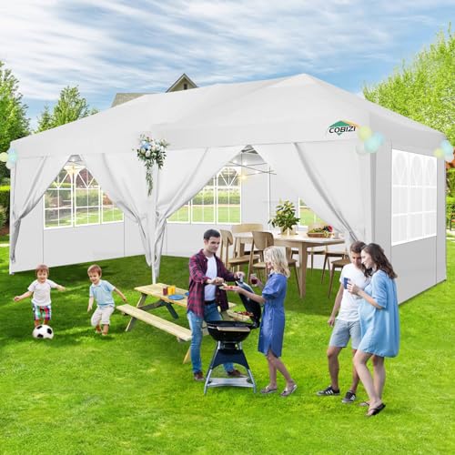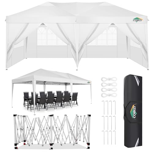 Complete Package: The 10x20 pop up event tent includes everything you need: 1 folding shelter tent, 6 sidewalls, 6 ropes, 12 stakes, and 1 carry bag. Ideal for a variety of uses such as garden parties, hot tub shelters, festivals, car camping, garage sales, and backyard gatherings. Note: For safety, avoid using the canopy 10x20 in severe weather conditions.