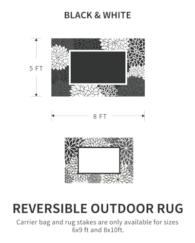 Reversible&Wide Use: Reversible outdoor rug offers versatile outdoor decor with advanced black surface and visually expanding white surface where you can relax, entertain, and enjoy allure of nature. Delicate flower pattern bring personality in the gardens, patio decor,balcony decor, grasslands, backyards, beaches, camping and area indoor outdoor. Avaiable sizes: 5X8, 6X9, 8X10.